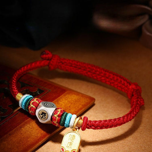 Sterling Silver Bamboo Knot Red String Adjustable Bracelet/Anklet