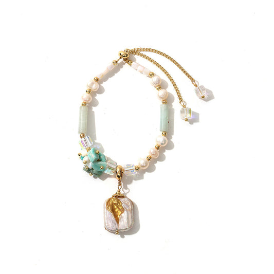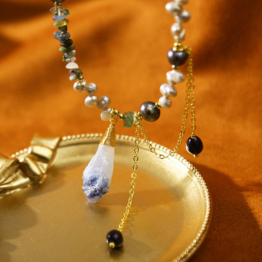 French Vintage Natural Stone Heart Titanium Steel Necklace